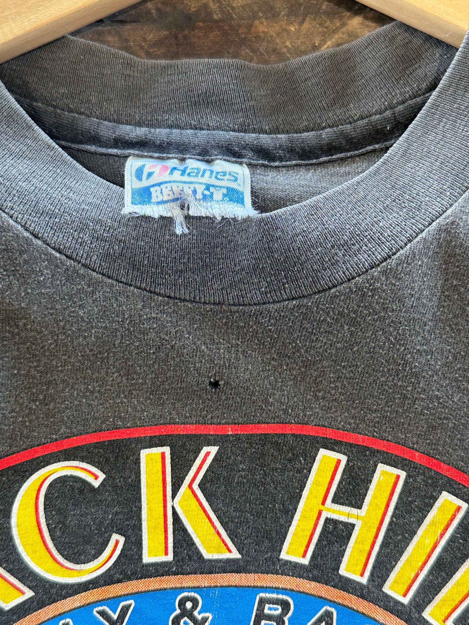 good vintage condition, one small hole on the front/top of the tee. See photos for reference/details.